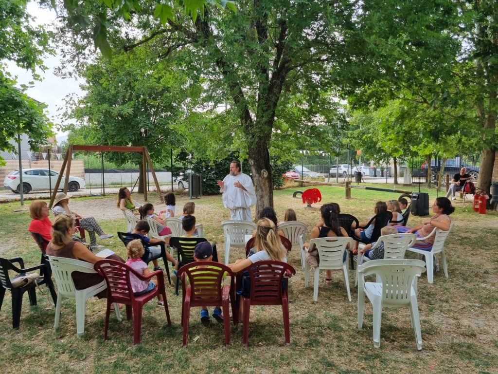 Martedì scorso, nell’area verde attrezzata è andato in scena il primo incontro “Il regno delle foglie. Fiabe e leggende di alberi magici” con cui il favolista, cantastorie e attore Mirko Revoyera, specialista nella narrazione di storie della tradizione popolare, ha coinvolto e fatto divertire i bambini e le bambine presenti.