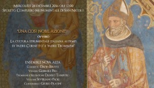 Mercoledì 28 dicembre 2016 ore 17:00 al Complesso Monumentale di San Nicolò è in programma un concerto di Musica barocca eseguita dall’Ensemble Nova Alta. L’evento, a cura dell’Accademia Spoletina, s...