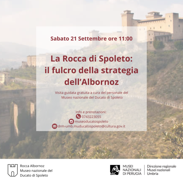 La visita è accompagnata per gruppi di massimo 13 partecipanti ed ha la durata di 1 ora circa. Prenotazione obbligatoria scrivendo all’indirizzo email museoducatospoleto@sistemamuseo.it.