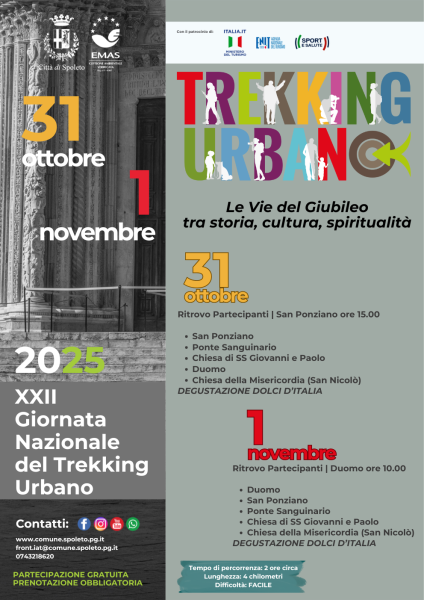 Il Comune di Spoleto propone due facili passeggiate, adatte a tutti, in programma per venerdì 31 ottobre e sabato 1 novembre della durata di circa 2 ore per un totale di 4 chilometri.