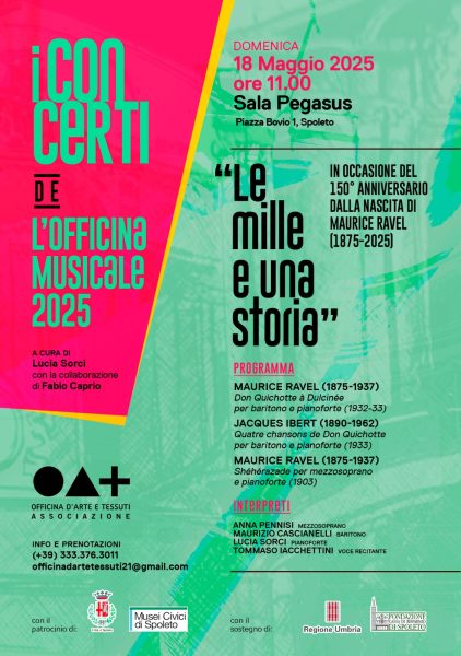 Domenica 18 maggio alle 11 presso la Sala Pegasus sarà possibile assistere ad un concerto dal titolo Le Mille e una Storia nell’ambito del programma “L’Officina Musicale 2025” dedicato a Maurice Ravel nel 150° anniversario dalla nascita (1875-2025).