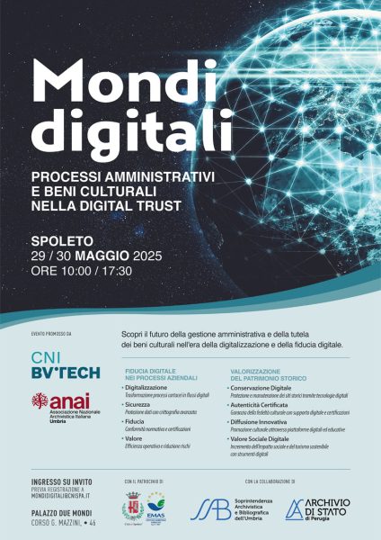 Nel cuore della città di Spoleto, negli spazi di Palazzo due Mondi, si terrà il 29 e 30 maggio 2025 il convegno “Mondi digitali. Processi amministrativi e beni culturali nella digital trust”, un importante appuntamento di riflessione e confronto sui profondi cambiamenti introdotti dalla digitalizzazione nei settori della pubblica amministrazione e della cultura. Una rivoluzione che ha segnato la nostra realtà, cambiando il modo di essere cittadini, amministratori del bene pubblico e fruitori di beni culturali.