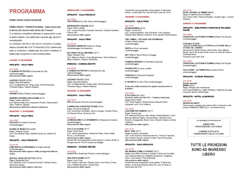 - La proiezione speciale del film È piccerella, di Elvira Notari (Spoleto il 14 dicembre);