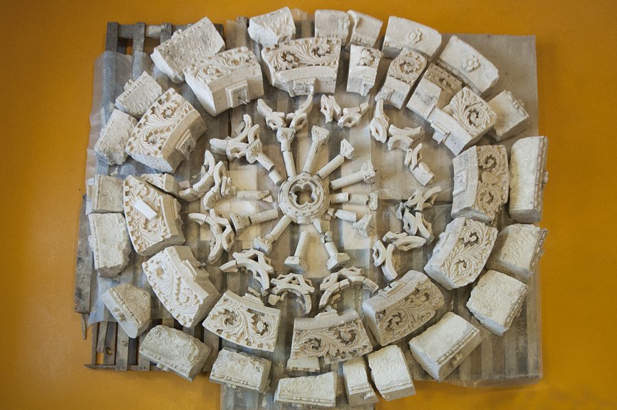 L’allestimento mette a confronto due modalità di ricostruzione. Da una parte la ricomposizione filologica dei frammenti archeologici in oggetti originari e dall’altra la ricomposizione dei frammenti architettonici in nuove forme e nuove funzioni.