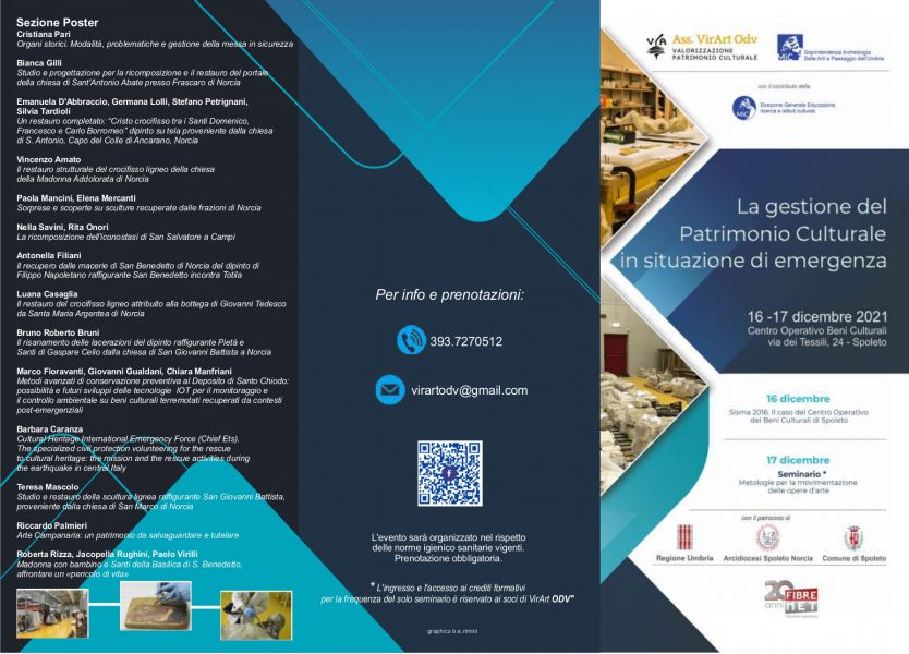 Info: https://virart.org/convegno-gestione-patrimonio-in-emergenza/ oppure sulla pagina Facebook Spoleto – Deposito Opere d’Arte di Santo Chiodo