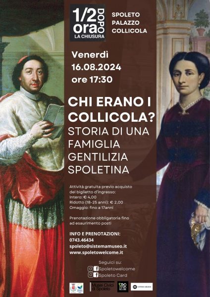 L’ appuntamento vi farà ripercorrere l’incredibile ascesa di questa famiglia, che dal piccolo paese di Montesanto di Sellano divenne uno dei nobili casati più importanti di Spoleto. A fare da ideale cornice all’incontro, l’appartamento gentilizio di Palazzo Collicola, massima espressione dell’importanza raggiunta nel XVIII secolo.