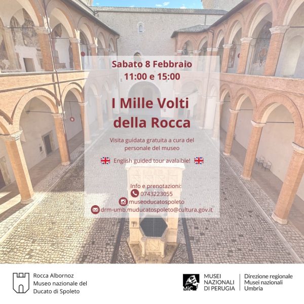 Si prosegue domenica 16 febbraio alle ore 11.00 con I mille volti della Rocca, una visita a cura del personale Assistente per la tutela, accoglienza e vigilanza per il patrimonio e i servizi culturali del Museo Nazionale del Ducato di Spoleto (luogo di incontro biglietteria della Rocca Albornoz).