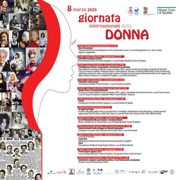 a cura di Comune di Spoleto, Fondazione Mina e Cesare Micheli e SoleLuna | al termine dell’incontro si terrà un intervento esplicativo sul percorso codice rosa del pronto soccorso di Spoleto che resta punto di riferimento della rete di supporto alle donne vittime di violenza e in condizioni di fragilità, a cura della Usl Umbria 2