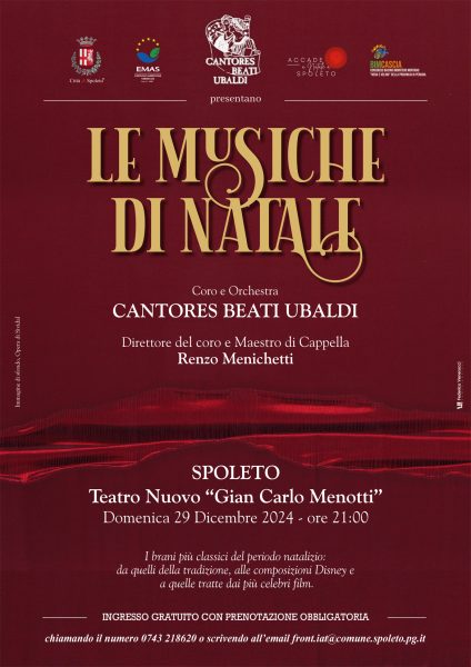 direttore del coro “Cantores Beati Ubaldi” e Maestro di Cappella, Renzo Menichetti | i brani più classici del periodo natalizio: da quelli della tradizione, alle composizioni Disney e a quelle tratte dai più celebri film | ingresso gratuito con prenotazione obbligatoria allo 0743 218620 o all’indirizzo front.iat@comune.spoleto.pg.it, specificando nome, cognome e recapito telefonico dei partecipanti.