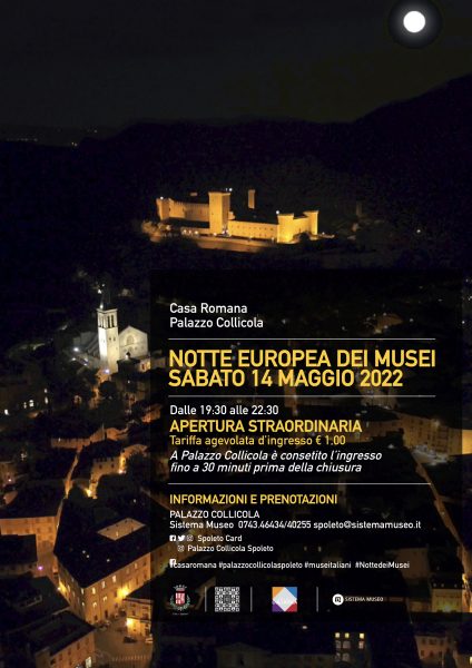 In occasione della Notte Europea dei Musei 2022che si terrà sabato 14 maggio, la Casa Romana e Palazzo Collicola rimarranno aperti in via straordinaria dalle 19:30 alle 22:30.