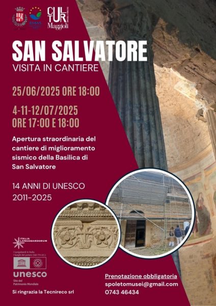 Il Comune di Spoleto in collaborazione con Maggioli Cultura e Turismo e Tecnireco srl propone delle visite guidate al cantiere di restauro della Basilica di San Salvatore di Spoleto patrimonio UNESCO, inserito nel 2011 nel sito seriale “I Longobardi in Italia.I luoghi del potere (568-774 d.C.)”.
