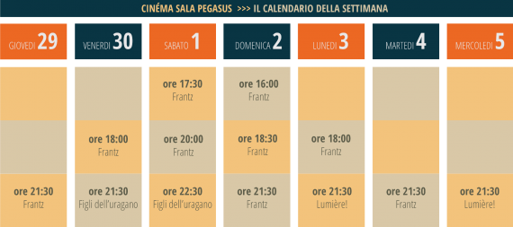 Programmazione SALA FRAU da Giovedì 29 Settembre a Mercoledì 05 Ottobre: