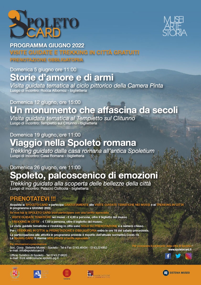 Coloro che non hanno la Spoleto card potranno partecipare alle visite guidate in programma con una tariffa agevolata di € 4,00 a persona e ai trekking in città alla tariffa di € 7,50 (entrambi oltre al biglietto del museo).