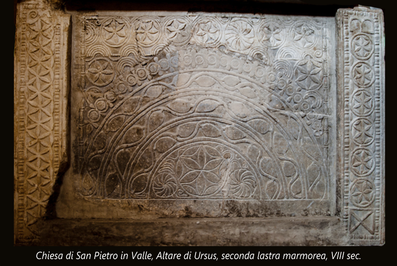 In the church, in fact, there are two splendid altar slabs from the Longobard period carved in low relief. The caption running along the upper and left margins is as follows: