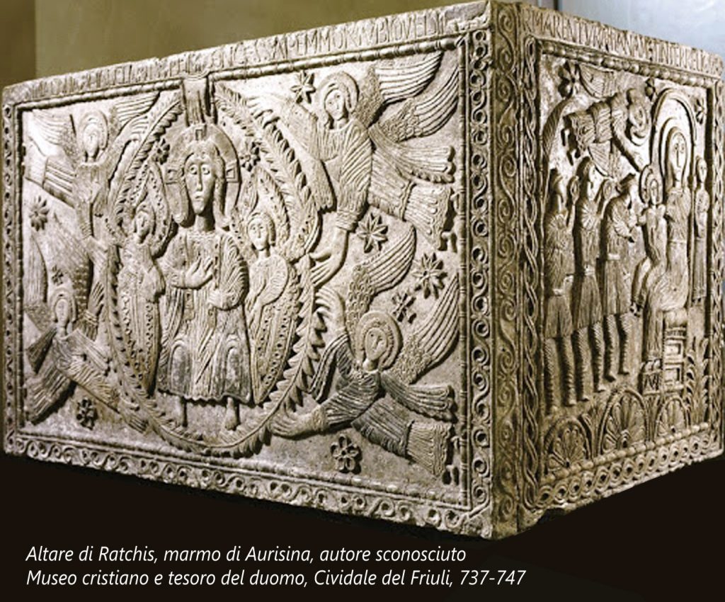 We conclude by pointing out that the many decorative elements are convincingly reminiscent of the valuable Altar of Ratchis in Cividale del Friuli.