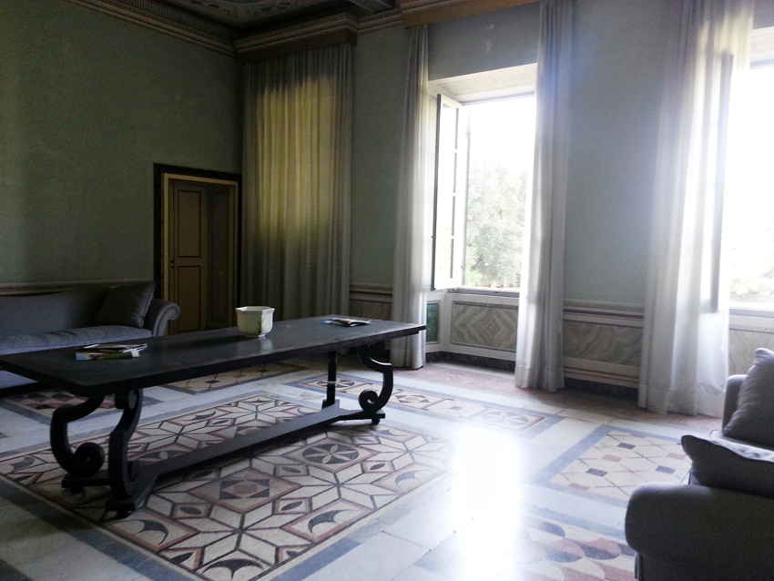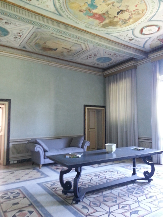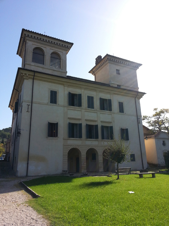 L’interno della villa è abbellito da affreschi cinquecenteschi di soggetto religioso, ma la maggior parte delle decorazioni sono databili tra XVIII e XIX secolo, a cominciare dall’atrio, dove il visitatore viene accolto da soldati napoleonici a grandezza naturale. Segue la grande sala dal pavimento musivo appartenente alla villa di epoca romana che in origine sorgeva sull’area. Interessanti anche gli esotici paesaggi della sala cinese e le scene di soggetto mitologico della sala Canoviana. Intorno all’edificio principale, sorgono altri edifici, tra i quali una cappella, la cafè house, interessante edificio in stile Rococò, la foresteria e le scuderie. L’intero complesso affaccia sullo stupendo giardino che ospita oltre 900 specie vegetali tra le quali un secolare cedro del Libano alto 19 metri.